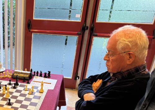 Bé Eshuis en Jan Neuteboom speelden een leuke partij. Bé had met wit vanaf de opening het initiatief, maar Jan gaf zich niet zo maar gewonnen. Eenmaal belandt in het middenspel gaf de ervaring van Bé de doorslag en liet hij Jan met lege handen achter.