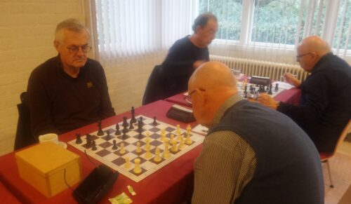 Ook op 16 december werden de vijftigplussers weer getrakteerd, Kees van de Voort (foto links) is 74 geworden en dit wilde hij niet ongemerkt voorbij laten gaan. Kees kreeg als kadootje geen overwinning, maar wel een knappe puntendeling tegen de sterke Hans Gillet.