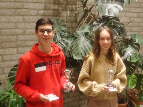 En … we gaan op 4 januari bij Tinnen Soldaat jeugdschaaktoernooi heel veel bekers winnen!