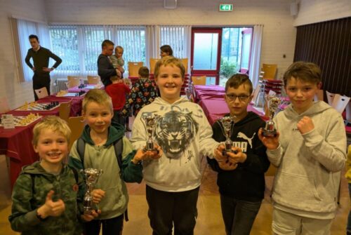 Opvallend was dat de verhouding tussen jongens en meisjes traditioneel scheef lag: slechts zes meisjes tegenover 35 jongens. Hopelijk trekt het schaken in de toekomst meer meisjes aan, want talent is er zeker. Theda bewees dat al in haar eerste toernooi, en wie weet welke nieuwe talenten zich de komende jaren zullen aandienen.