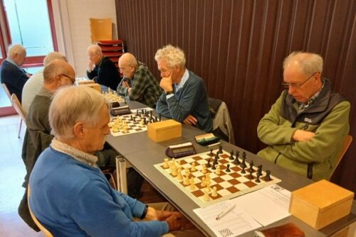 De vijftigplussers werden weer getrakteerd, ditmaal door Jelle Bottema, niet vanwege zijn mogelijke verjaardag maar gewoon omdat hij het vijftigplusgroep schaken zo’n leuk uitje vindt.