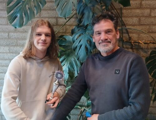Joas Meijer is winnaar geworden van het Tinnen Soldaat toernooi met de fantastische score van vijf uit vijf! Hij mocht uit handen van “mister Tinnen Soldaat”, want zo mogen we Dick Wenning zo langzamerhand wel noemen, de bokaal in ontvangst nemen.